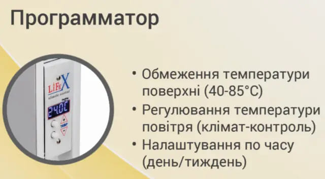 Керамічна панель з програматором-терморегулятором потужністю 1400Вт. Вбудований короб для конвекції. Настінний монтаж, ніжки опціонально (не в комплекті). Розмір панелі 1200х600х50. Біо конвектор LIFEX, це інфрачервона керамічна панель опалення з посиленою конвекцією, За інфрачервоне тепло відповідає лицьова сторона, а за нагрів конвекцією контур, який розміщений всередині концекційного коробу.