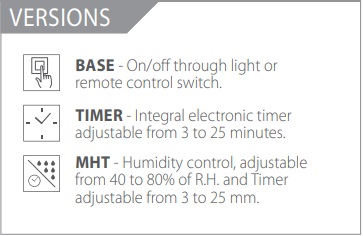 Вентилятори Elicent від Maico Italy серії E-style trend. Тонкі настінні осьові вентилятори - ультратонкий стиль. Для викидання повітря безпосередньо на зовнішню частину або в короткий вентиляційний канал (максимальна довжина 3 м). Підходить для туалетів, ванних кімнат, душових кімнат, побутових кімнат та кухонь. Оснащений регульованим таймером затримки вимкнення від 3 до 25 хв.